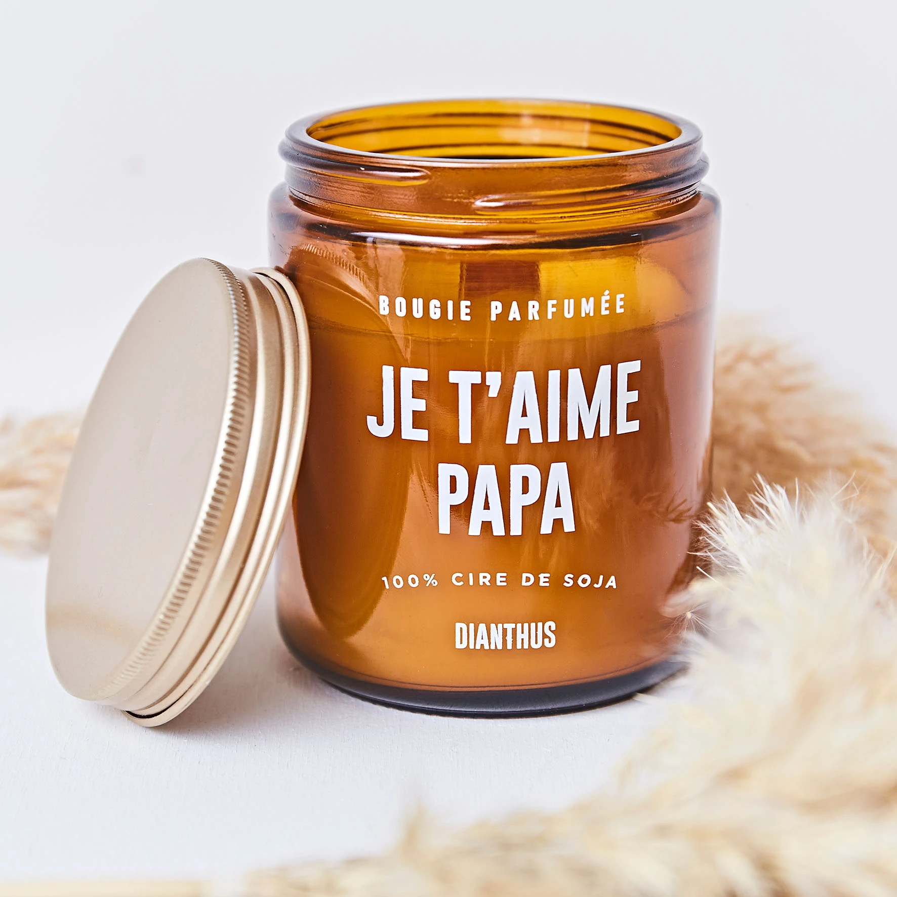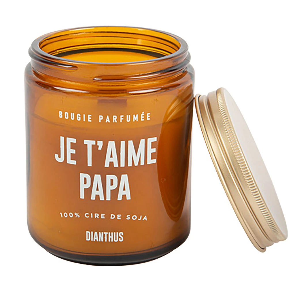 Venez découvrir notre Bougie cire de soja « je t’aime papa » parfum dianthus verre ambré d7.3xh9cm de la marque ARTY FETES à découvrir sur Fabrique de Styles.