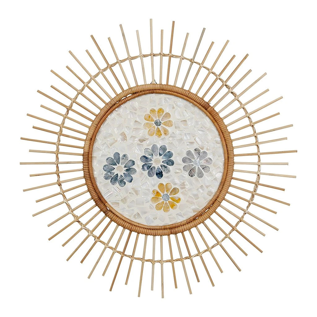Venez découvrir notre Déco murale fleur mon hirondelle bleu et jaune en rotin et nacre de la marque 466889 à découvrir sur Fabrique de Styles