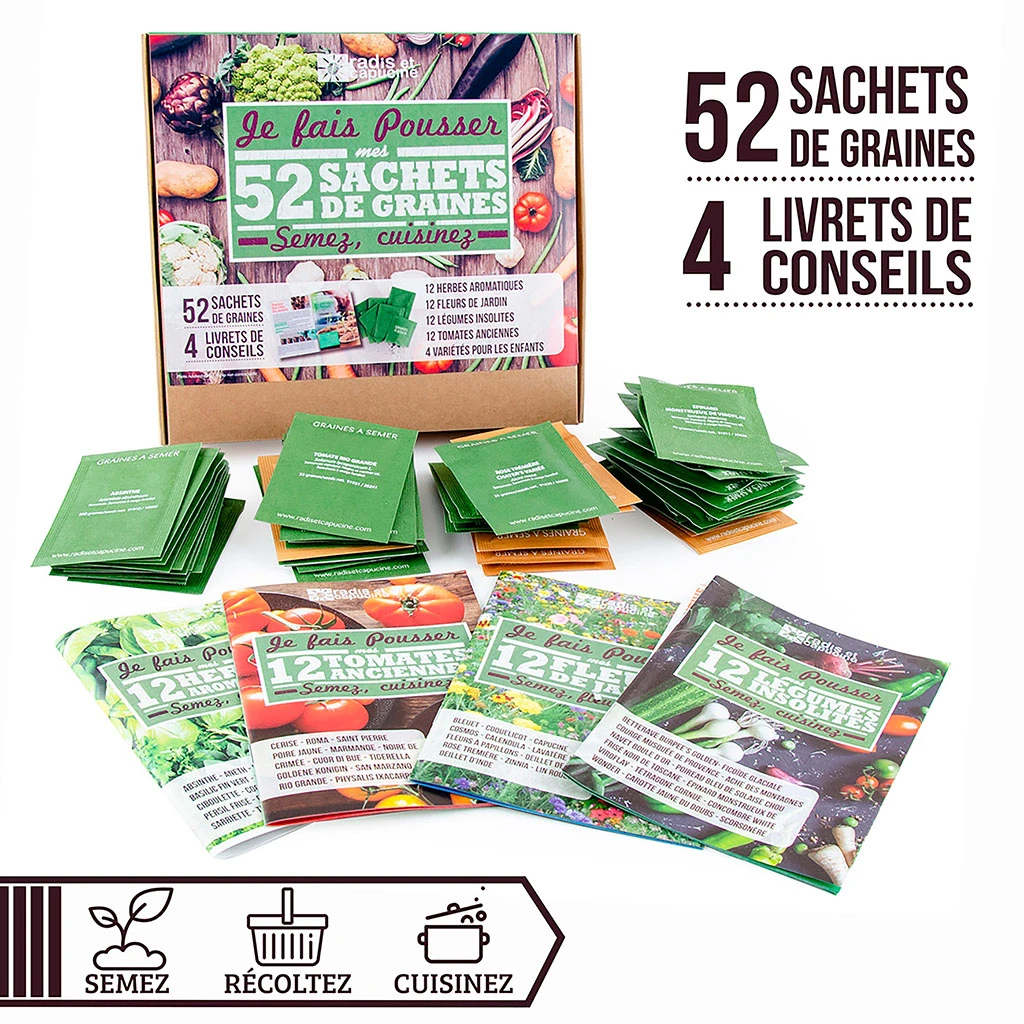 Venez découvrir notre Coffret 52 sachets de graines – legumes de la marque Radis et Capucine à découvrir sur Fabrique de Styles